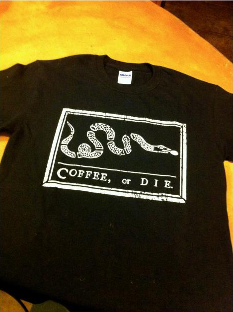 The owner of a local coffee shop, Alabaster Coffee Roaster and Tea Company, hired me to design their t-shirt. They wanted a shirt that referenced the Benjamin Franklin “Join, or die” woodcut. I redrew a vector version of it in Adobe Illustrator with close attention to detail, then used Photoshop to create the appearance of a woodcut.