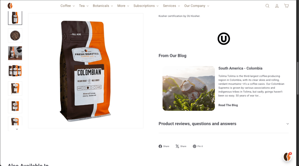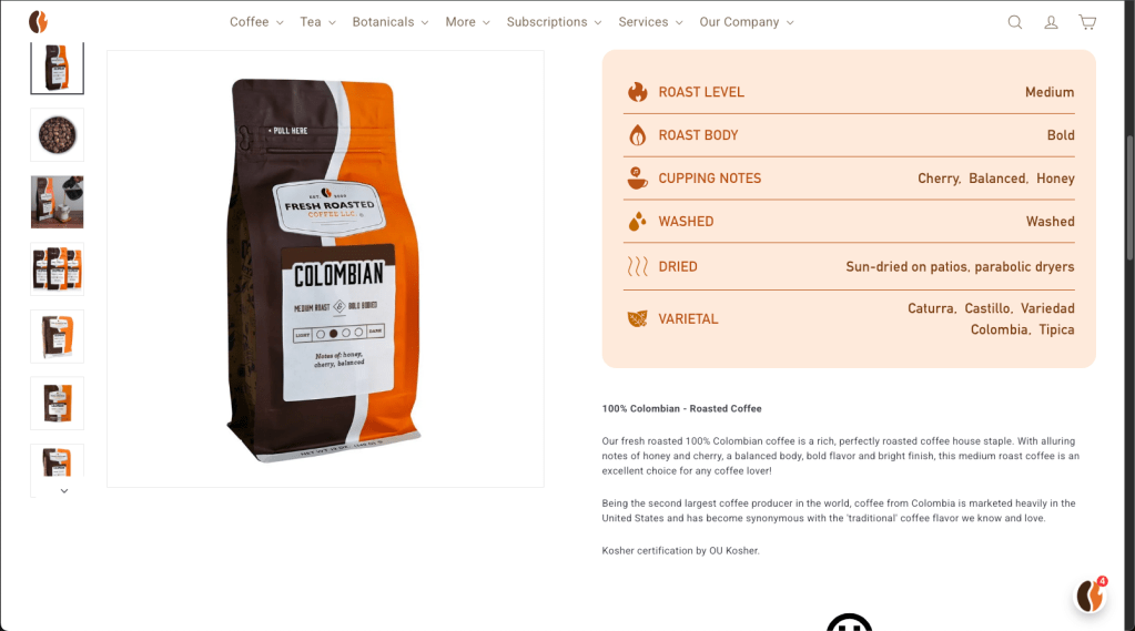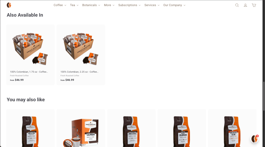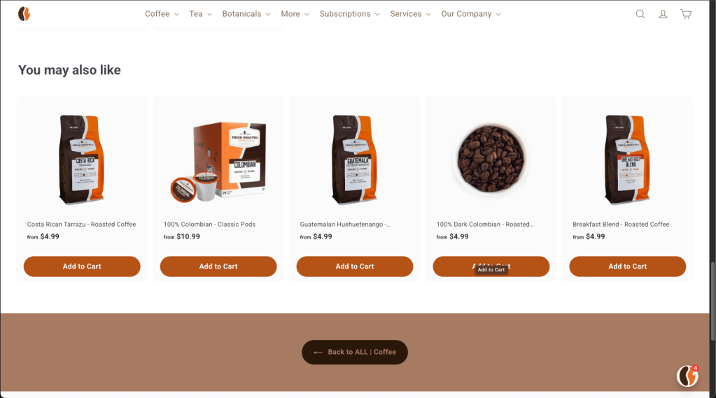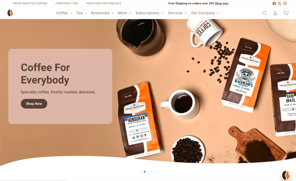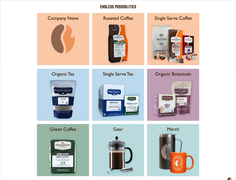 - Fresh Roasted Coffee actually consists of three brands: Fresh Roasted Coffee, and two sister brands: Positively Tea and Positively Botanicals. The shopping experience and navigation for tea and botanicals was unintuitive and clunky.