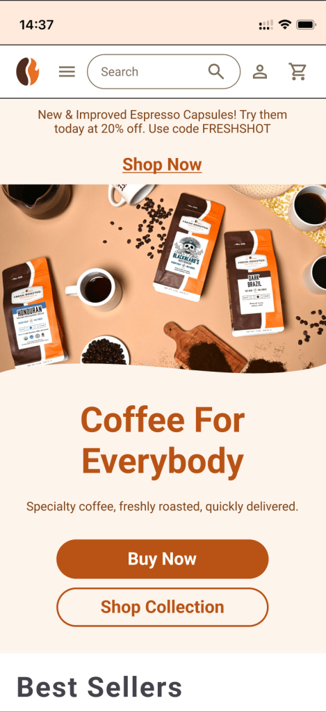 The user: Customers of Fresh Roasted Coffee, an eCommerce company that sells made-to-order coffee, tea, and botanicals online. Customers are typically in their 40s-50s. The site is primarily accessed on mobile, but most purchases are completed on desktop.
