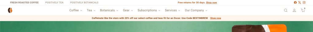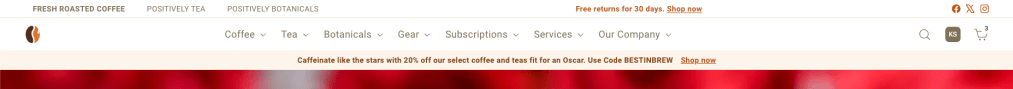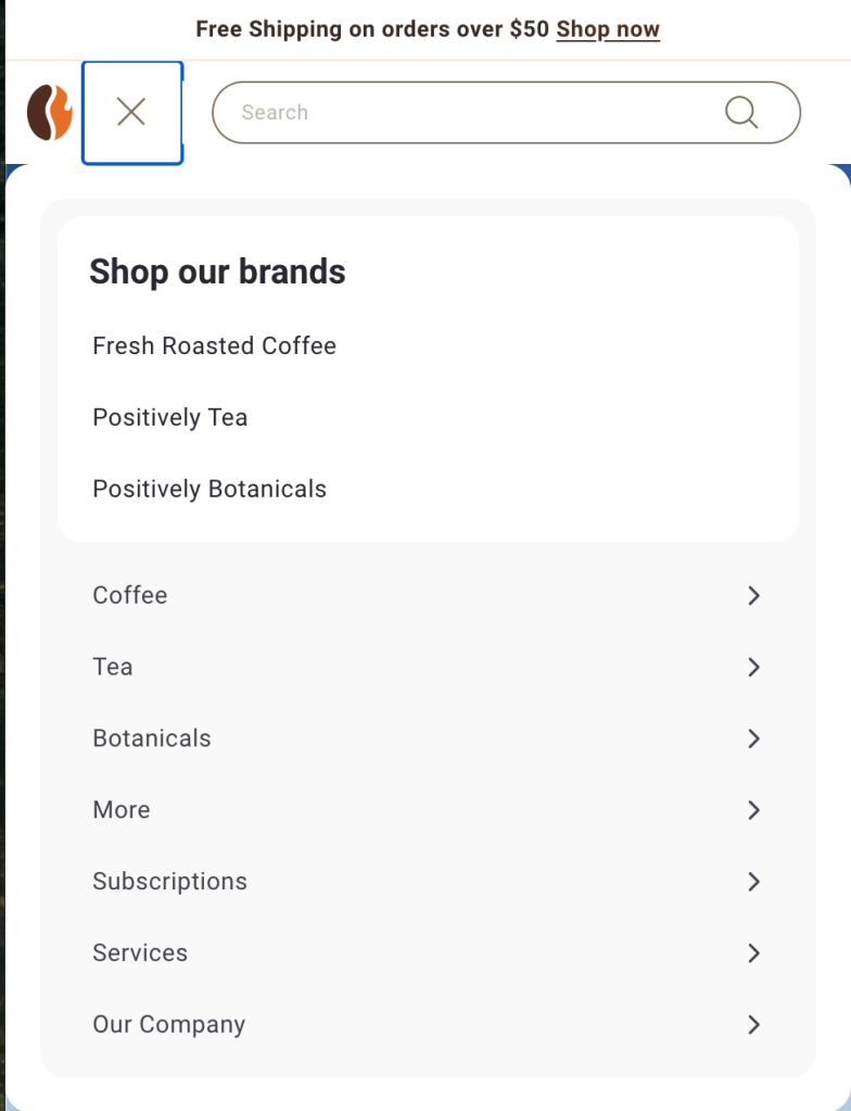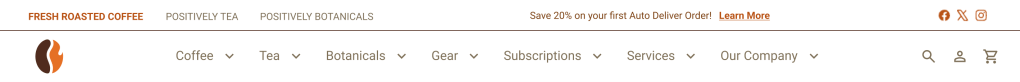 The problem was that if a user wanted to return to the homepage for tea or botanicals, clicking the logo in the upper left, a common user pattern, would return them to the homepage for Fresh Roasted Coffee against expectations. This created user frustration and a desire to have all brands navigate in the same way.
