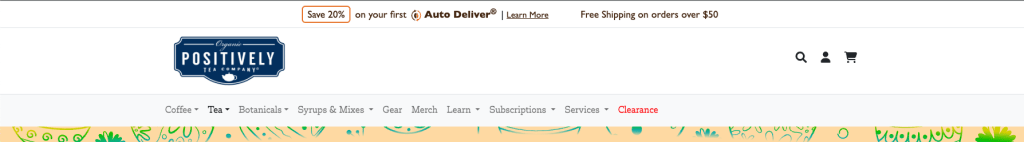 For example, if the user shopped for tea, the logo at the top left would change to the Positively Tea logo, like this: