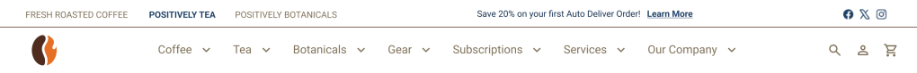 We found through user testing that having the Positively Tea or Positively Botanicals logo return users to the landing page for those brands was not ideal either. This made returning to the homepage for Fresh Roasted Coffee a source of confusion. A different solution was needed.